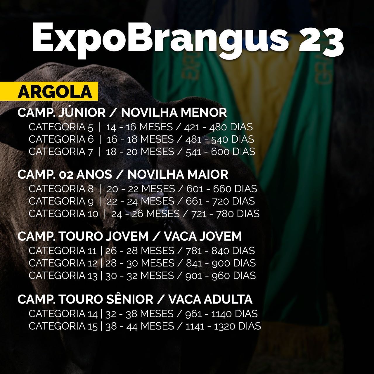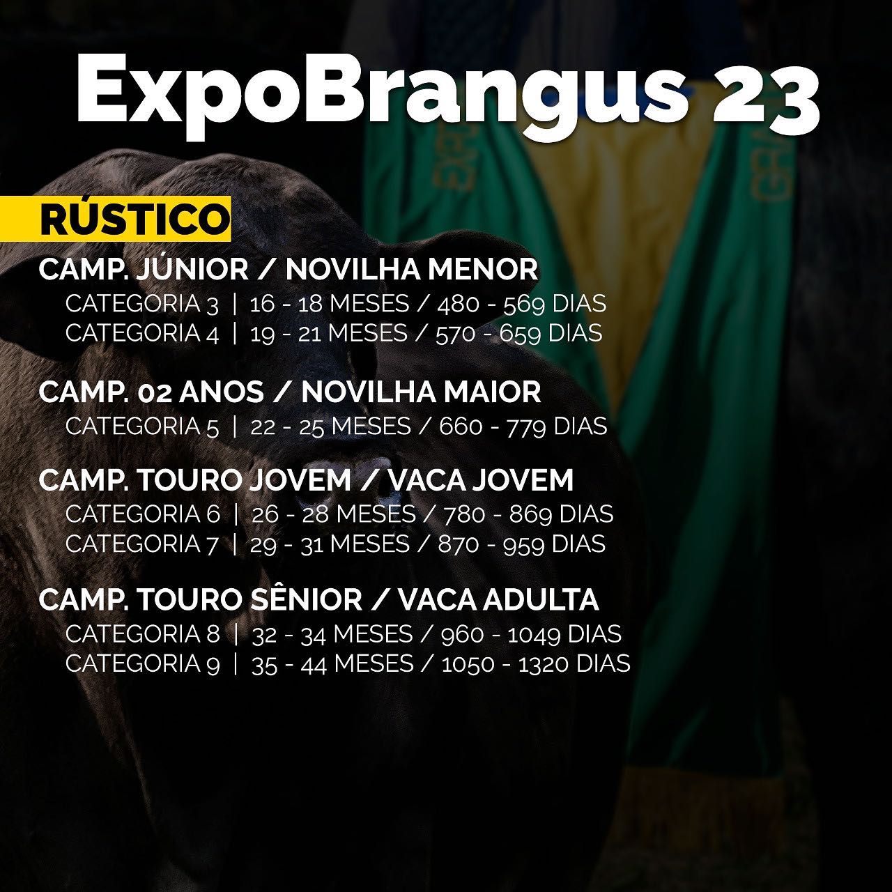 Confira as categorias de rústicos e de argola da Expobrangus 2023 e tambem as novas categorias e campeonatos da categoria Júnior.