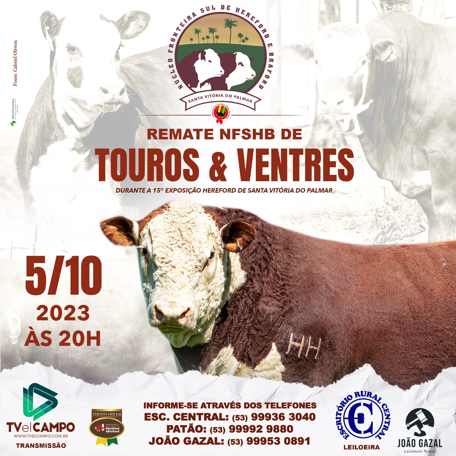 Dia 05/10 direto de Santa Vitoria do Palmar RS, #Leilao Núcleo Fronteira Sul HB a partir das 20horas no site, YouTube e App www.tvelcampo.com.br