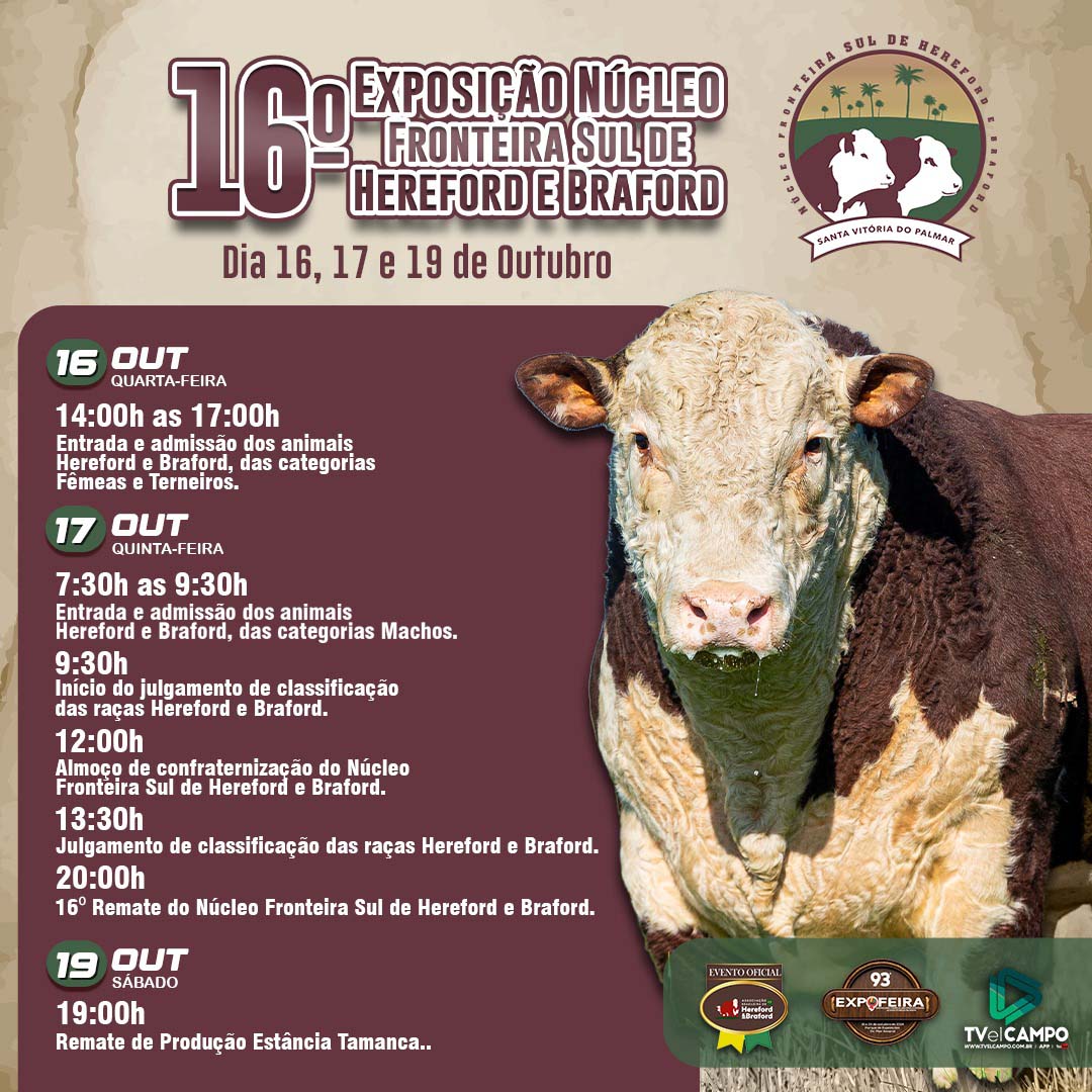 Julgamento Expofeira Sta Vitória do Palmar - Manhã (Hereford e Braford) 17/10 A PARTIR DAS 09H30MIN - TV El Campo