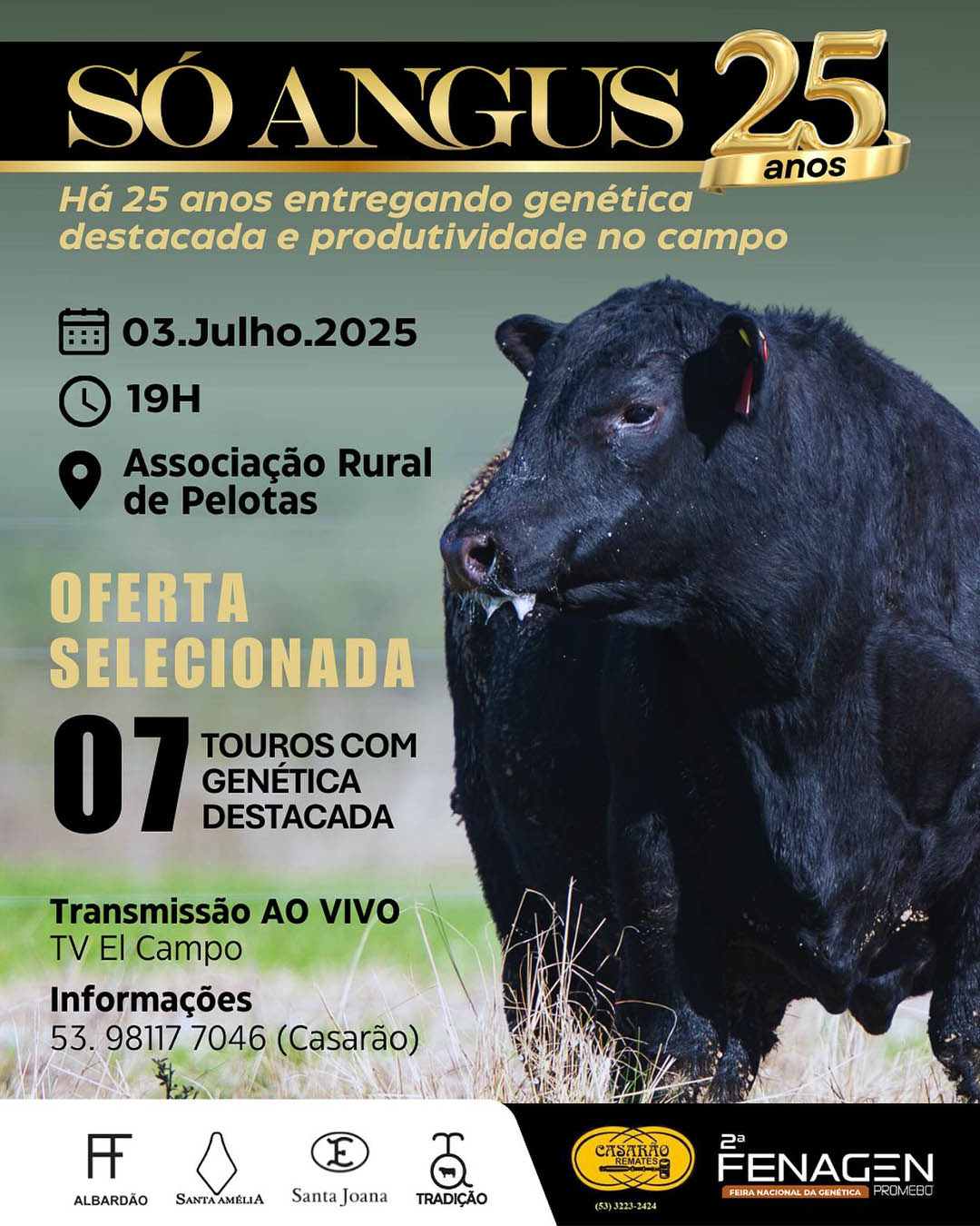 Leilão SÓ ANGUS 25 anos | Ed.2ª FENAGEN 03/07/2025 19h - Transmissão TV El Campo