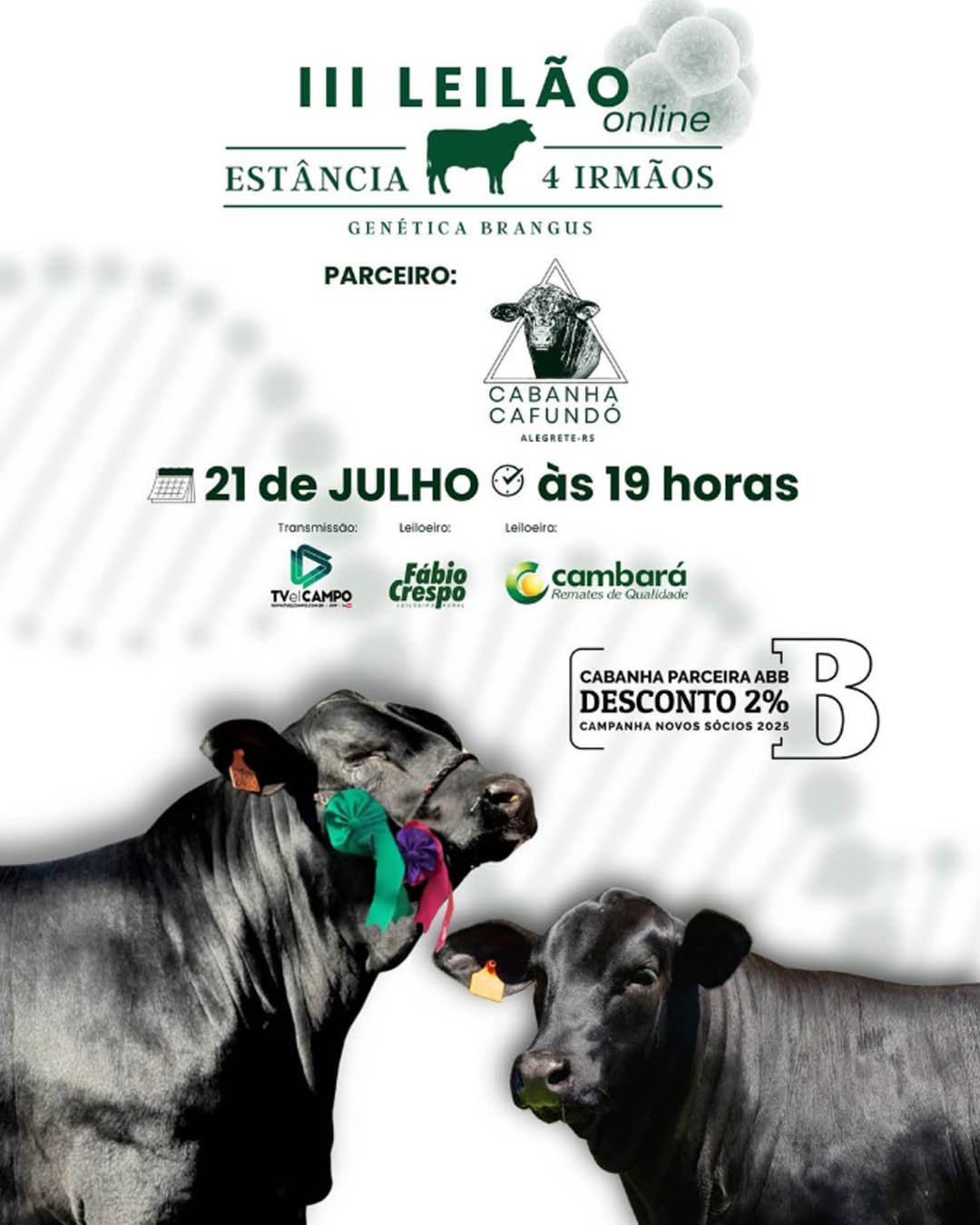 🏆 No dia 21 de julho, a Estância 4 Irmãos traz um leilão especial, repleto de genética diferenciada para transformar seu rebanho.